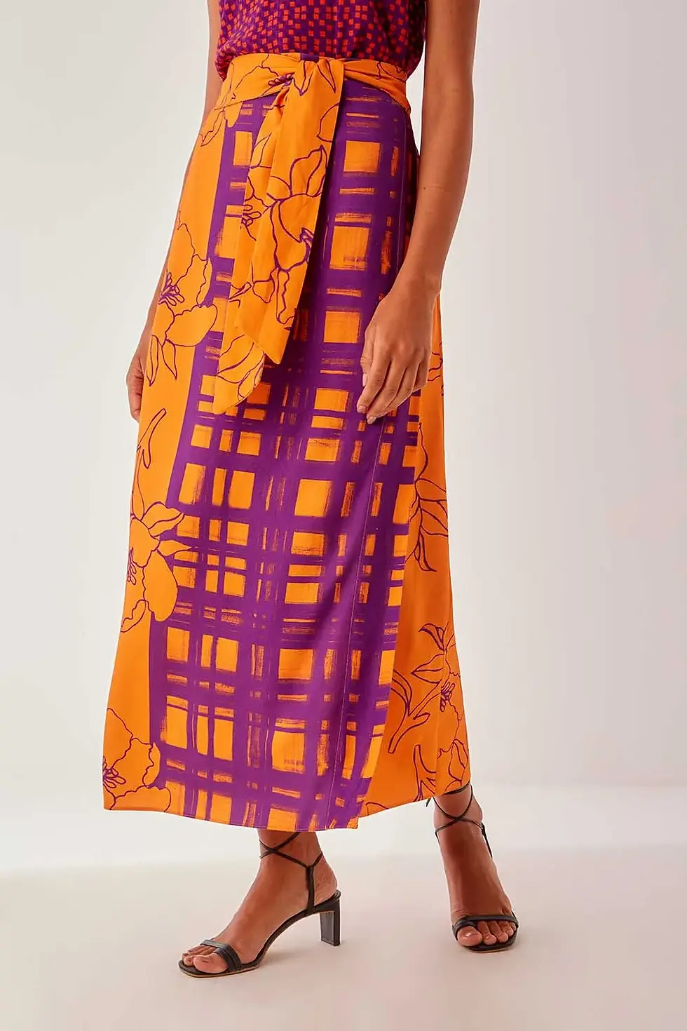 Saia longa envelope estampa laranja/roxo Sacada - 38
